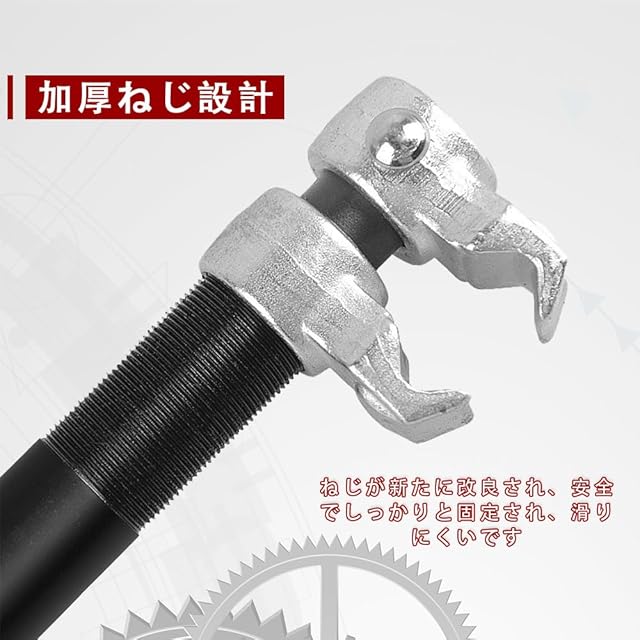 【安全性向上の使用方法】使用時は必ず2本を対角に掛け、均等に締め緩めを行ってください。スプリングをしっかり固定し、作業中の安全性を確保します。