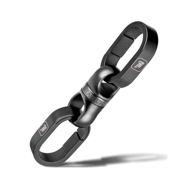 [FEGVE] チタン キーリング 車キーホルダー メンズ スマートキー 金具 360°回転コネクタ 紛失防止 (ブラック/コネクタ1個+連続リング*2個)