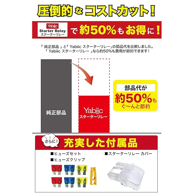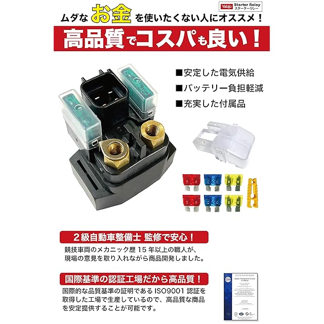 【高品質にこだわりました】 安定した電気供給、バッテリーの負担軽減を目的としたYabiicスターターリレー。現場を知り尽くした2級自動車整備士監修、国際基準認定工場で開発したので安定して高品質な商品を提供致します。