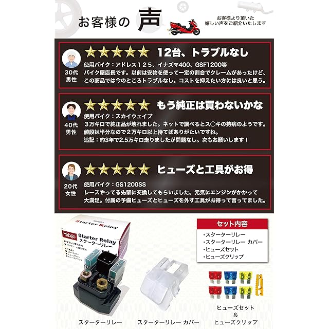 商品名:Yabiic セル スターターリレー アドレスV125 G S スカイウェイブ 250 / 400 バンディット 250 / 400 バーグマン 400 GSX400 インパルス イナズマ 400 / 1200 RF400 / V GSX-R 600 / 750 / 1000 TL1000S / R SV1000 /S GSF1200 GS1200 SS GSX-R1300 隼