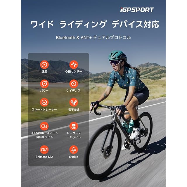 【ANT+、Bluetooth、電動アシスト自転車および電子変速システムに対応】このサイクルコンピューターはBluetooth 5.0およびANT+に対応しており、速度、心拍数、ケイデンス、パワーメーター、スマートトレーナー、レーダー、電動アシスト自転車などの外部センサーに接続できます。電動アシスト自転車モードでは、バッテリー残量や航続距離などの情報を表示し、より多くのデータを提供します。また、Shimano、Sram、Campagnoloの3大電子変速システムにも対応しており、プロフェッショナルなライディングニーズに応えます。
