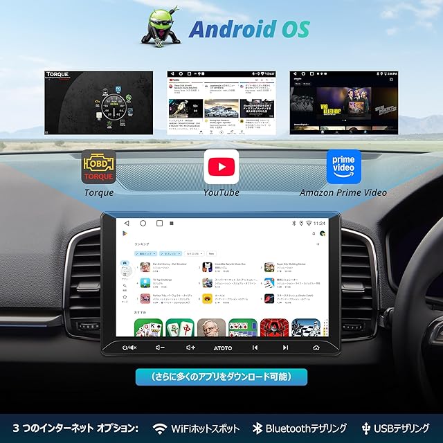 商品名:【10.1インチ】ATOTOEXCEL A5L Androidナビ ディスプレイオーディオ 2DIN、ワイヤレス Carplay & Android Auto、OBD2スキャナ付き、GPS トラッキング、ChatGPTとの会話、24バンドEQ、DSPアンプ、Wi-Fi/BT/USB テザリング、2G+32G、USB/TF動画再生、2分割画面[技適取得済み品]