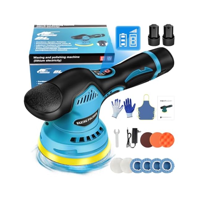 商品名:【2025強化版】Bippoer ポリッシャー 充電式 電動ポリッシャー 大容量バッテリ一2個搭載 12V ダブルアクション 車 コードレスポリッシャー 8段変速 5500回転/分 ディスク直径125mm 多機能 研磨機 車磨き 家庭用 艶出し 傷消し 鏡面磨き 豊かな付属品 日本語説明書付き (ブルー)