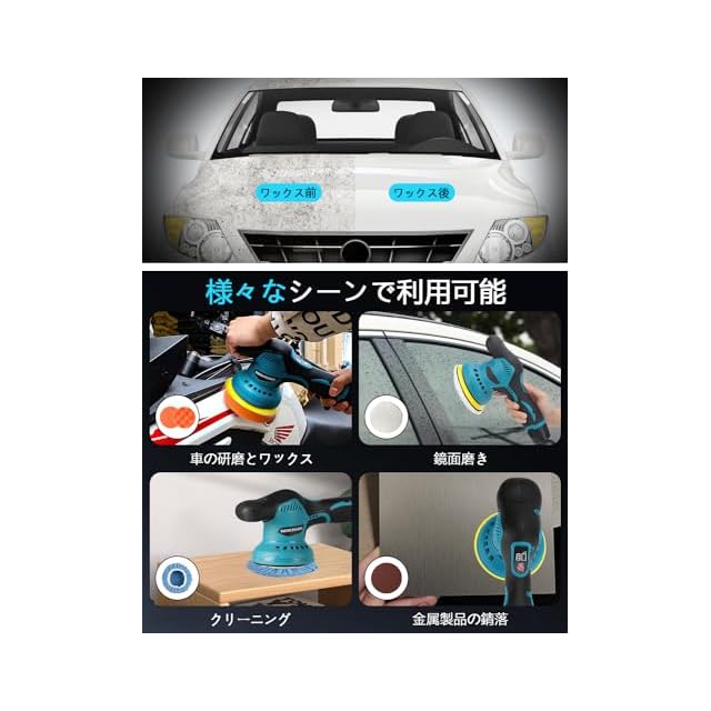多機能ポリッシャー:このダブルアクションポリッシャーは、シングルアクションのものより優れており、12mmの偏心軌道で広範囲を効率よく磨けます。傷のある塗装面を簡単に整え、作業時間を大幅に短縮できます。初心者でもすぐに使いこなせる簡単操作が魅力です。