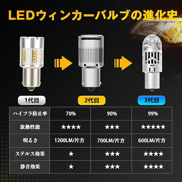 【2025年ハイフラ防止機能強化版】通常LEDは純正球よりも消費電力が低いため、玉切れを起こしたと認識し誤作動を起こしてしまいハイフラ状態になり、別途ハイフラ対策をする必要がありますが、 S25 LEDウィンカーは、キャンセラー内蔵し、冷却ファンを搭載し、LEDの過熱を防ぎながら長時間でも安定した輝度をキープします。追加の抵抗器やリレー交換は不要、純正バルブのようにそのまま差し替えるだけで簡単にLED化が可能です。※万が一ハイフラ現象が発生した場合は、お気軽にご連絡ください。