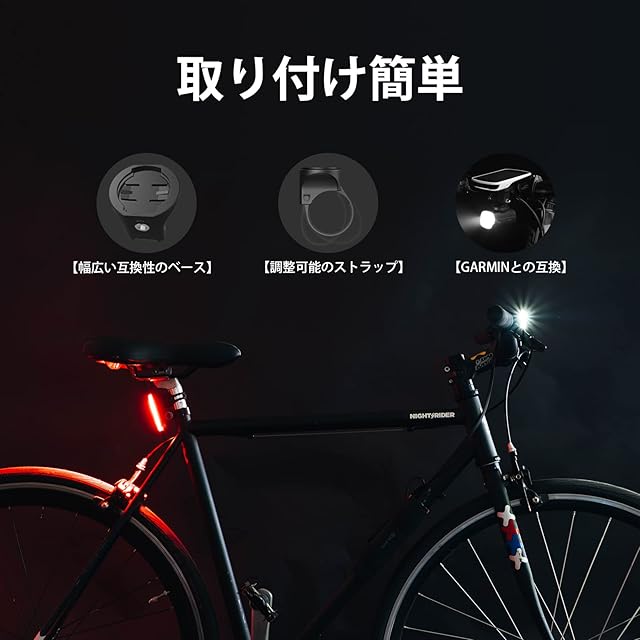 [取り付け簡単] RN400はGARMIN標準ベースと調整可能なストラップバンドを兼ね備えて、ヘルメット、Goproカメラにしっかりと取り付けられて、吊るして取り付けることもできます。また、シートチューブ直径22mm-35mm以内に対応可能なシリコンホルダーが付いております