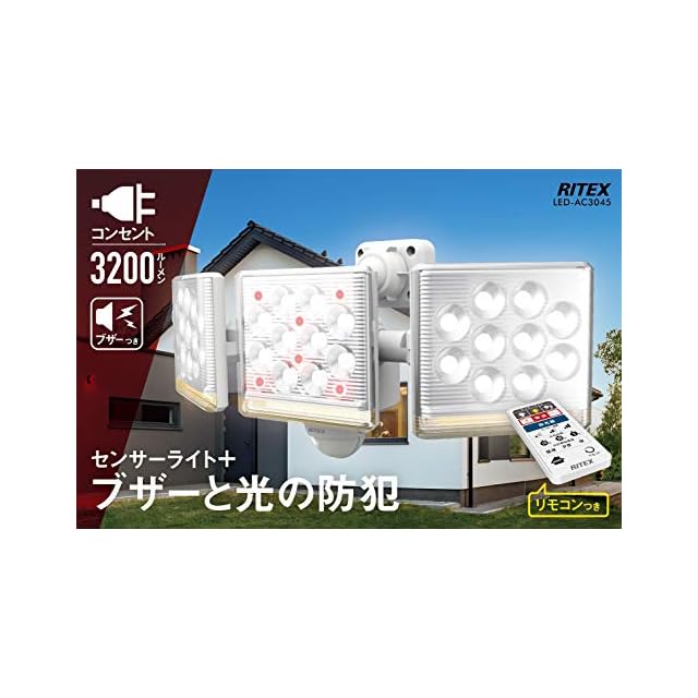 商品名:ムサシ RITEX フリーアーム式高機能LEDセンサーライト(12W×3灯) 「コンセント式」 LED-AC3045 ホワイト