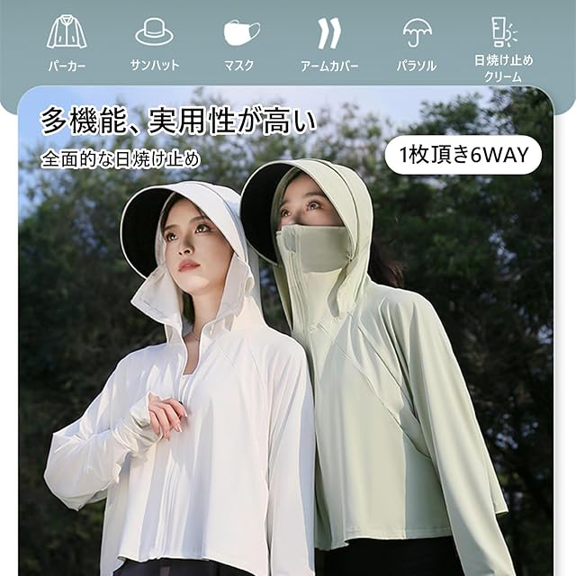 [ANONIE] ラッシュガード レディース 日焼け止めパーカー uvカット 冷感パーカー 長袖 水着 軽量 薄手 無地 ラッシュパーカー 夏服 UPF50+ つば付き 取り外し可能 日焼け止めウェア 紫外線対策 white