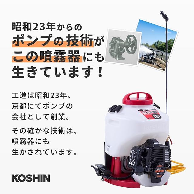 工進(KOSHIN) 背負い式 エンジン 動噴 タンク 10L ES-10C 2サイクル 混合 リコイル スタート カスケード ポンプ 消毒 防除 除草 縦型2頭口噴口、泡状除草噴口