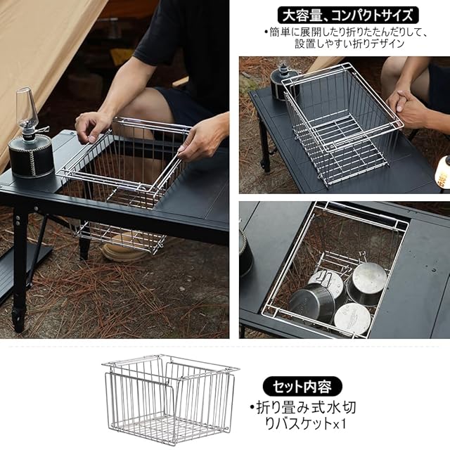 商品名:deerest1.0ユニット折り畳み式水切りバスケットメッシュトレーIGTテーブル汎用交換可能食品グレードステンレス鋼バスケットトレーラックカゴアウトドアキャンプアクセサリー (1.0_折り畳み式)