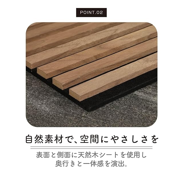 不二貿易 木製吸音ウォールパネル 防音 幅40.5×奥行1.8×高さ80cm ミディアムブラウン 40966