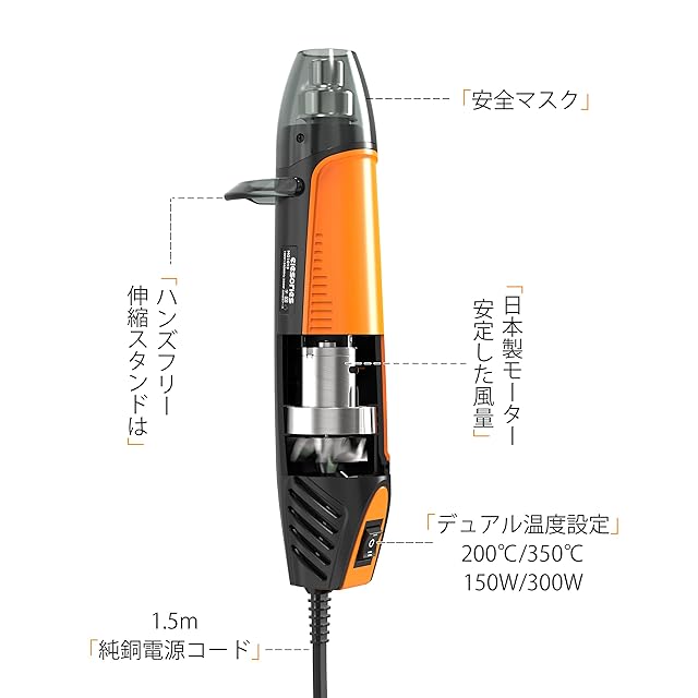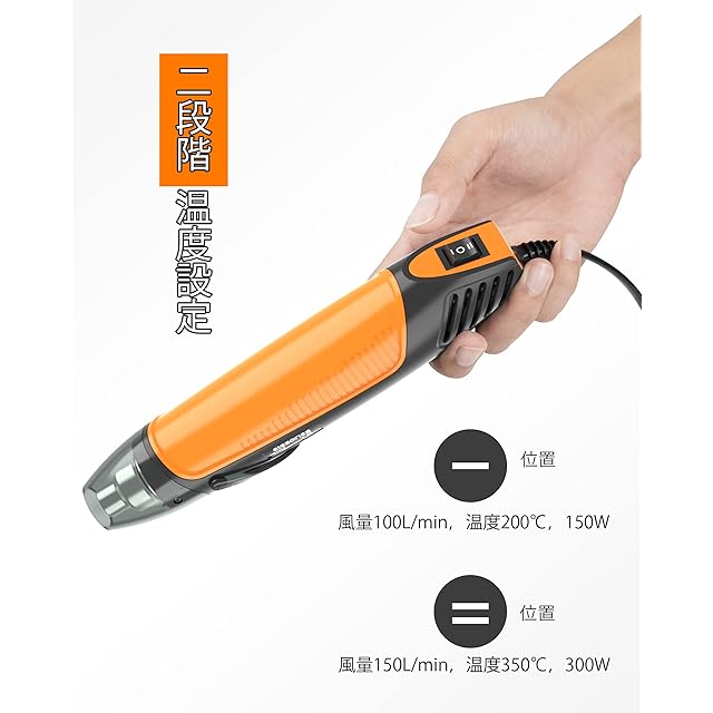 商品名:ヒートガン 小型 elesories エンボスヒーター レジン用 ミニ 300W 2段階温度設定 急速加温 200℃/350℃ 超軽量 曲面ノズル付き 各種手芸DIY レジンの気泡とり ねんどの乾燥 熱収縮チューブ 紙装飾品 溶接 剥離 PSE認証 初心者 ホットガン ヒートガン - HG1015-2