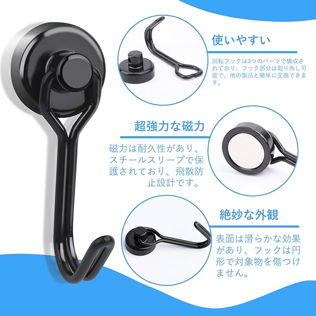 経済的で実用的: 当社の頑丈なマグネットフックは、手頃な価格であるだけでなく、耐久性も優れています。何度でも再利用できます。非常に強力な吸着力により、アイテムを吊るすための信頼性の高いソリューションを提供します。