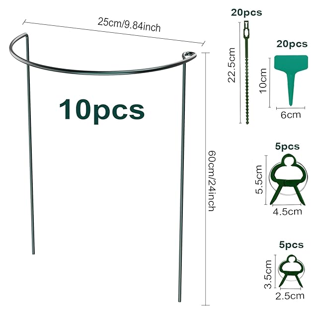 【半円形植物支柱】 半円形の植物サポートは整然とした境界を作成されて、緑の滑らかな表面により、自然に植物に溶け込むことができ、花、鉢植えの植物、葉物植物など多くの植物をまっすぐ健康にいい姿で成長させるために十分にサポートし、つるが広がったり落ちたりすることを防ぐことに大活躍です。