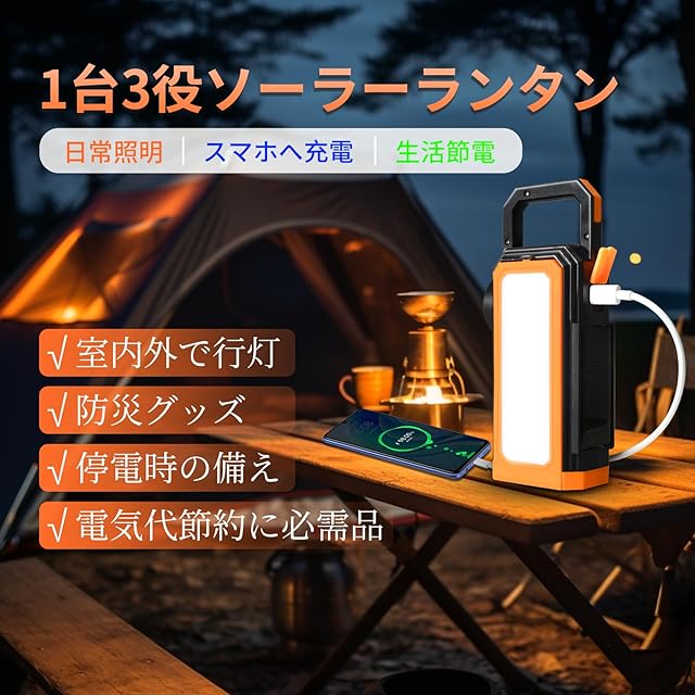 商品名:【2025年新型】ソーラーランタン LEDランタン ソーラー充電 ソーラーランタン ス マホ 充電 6つ照明モード 折り畳み式 吊り下げ用 懐中電灯 SOS 防災グッズ 停電 節電対策 バーベキュー&室内行灯&夜中のトイレ&キャンプ用&お庭でのイベント装飾&廊下の常夜灯用 長時間使用 IP65防水 キャンプランタン 日常照明&スマホへ充電&生活節電 PSE認証済 日本語説明書