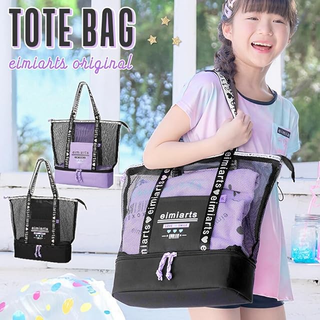 商品名:[アリサナ] メッシュ トートバッグ 女の子 プールバック 2層 おしゃれ ジュニア ブラック ワンサイズ