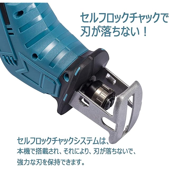 【セルフロックチャックで刃が落ちない!】従来のものは刃が落ちるという声があり、セルフロックチャックシステムを開発し、本機で搭載。電動のこぎり、刃が落ちないで強力な刃を保持できます。