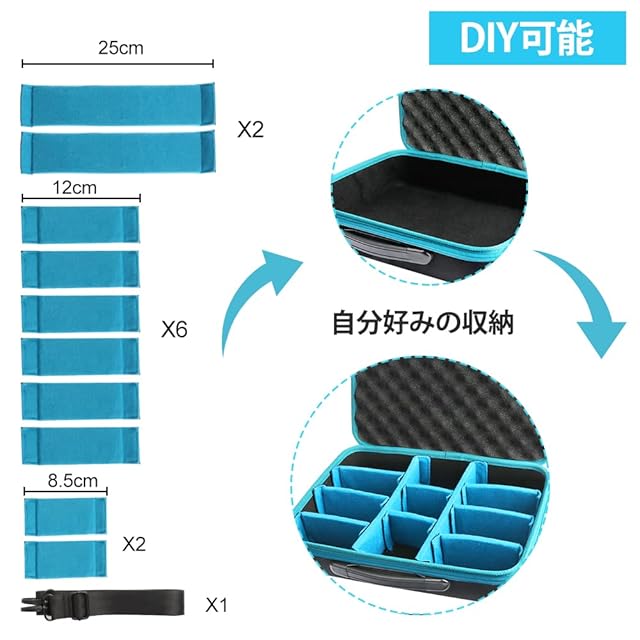 【優れた内部保護】内側には、耐衝撃発泡スポンジとマジックテープ式の仕切りを使用しており、過度な衝撃によるバッテリーの損傷を防ぎ、あらゆる面でバッテリーの安全性を確保します。、電池がぶつかることを避け、安全に収納することができます。