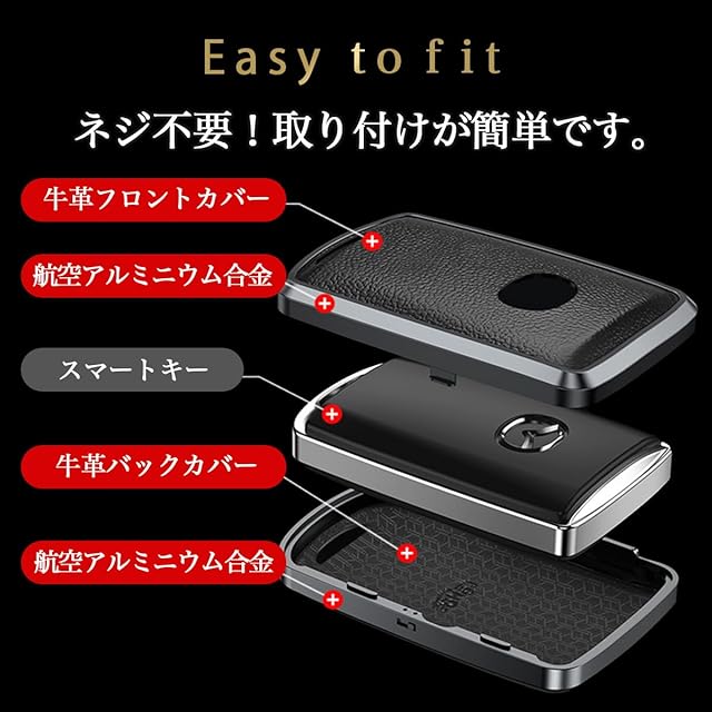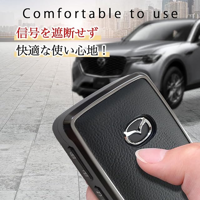 [MKMC] スマート キーケース カバー アルミ 革 素材 cx60 cx5 cx80 cx30 cx8 マツダ3 マツダ6 対応 カスタム アクセサリー パーツ (ブラック)