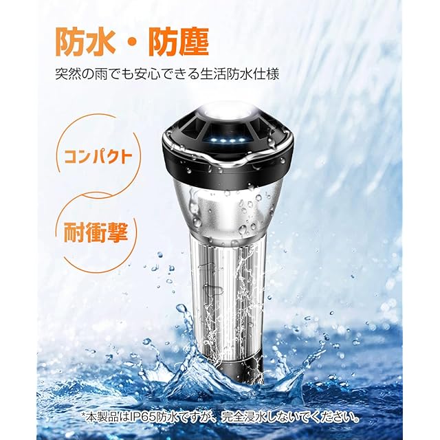 【3種の光源・4つの点灯モード・無段階調光】LEDランタンには3つの光源が搭載されており、暖かい光、白い光、赤い光が選択可能です。4つの点灯モードは、懐中電灯モード、白色点滅モード、キャンプライトモード、赤色点滅モードです。LEDライトや懐中電灯モードでは、スイッチを長押しすることで光の明るさを無段階に調節できます。これにより、周囲の環境に適した光や雰囲気を作り出すことができます。IPの65防水防塵仕様は、一般的な雨やほこりから保護し、アウトドアの変化する環境に対処します。ただし、長時間水に浸してはいけません。水がたまっている場合は、照明に影響を与えないように早めに清潔な布で拭き取ってください。