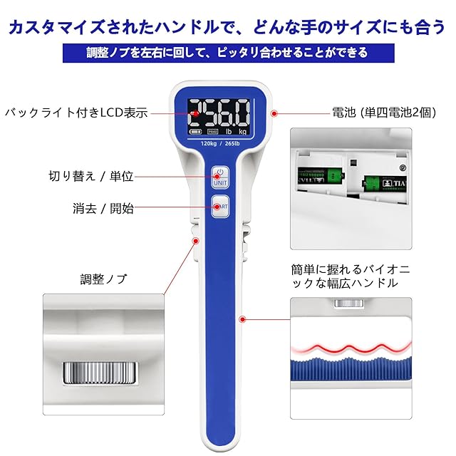 「高性能」--このデジタル握力計は0.1KG刻みで最大120KGを測定できます。正確で精度の高い結果を提供します。