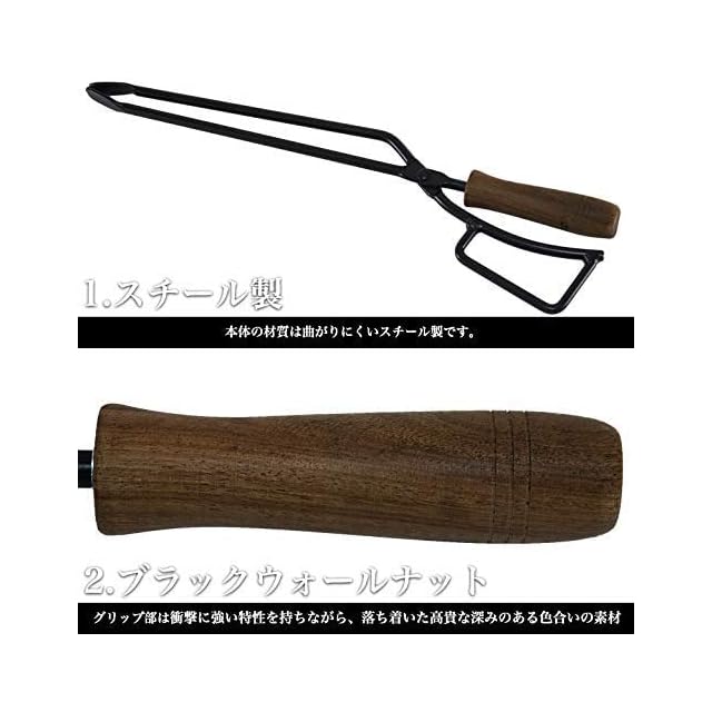 商品詳細<br>商品名:Fireplace Tongs/ファイヤープレーストング<br>メーカー:TEOGONIA/テオゴニア <br>品番:63495<br>JAN:4573125826535<br>総重量:390g<br>サイズ:全長420mm<br>【素材】<br>本体:スチール<br>グリップ:ブラックウォールナット<br>生産国:日本<br>※製品は予告なく仕様を変更する場合があります。<br> ※本製品で薪以外の物(網・鉄板・ダッジオーブン)等を挟んで使用したりしないでください。<br> 破損の原因となります。<br> <br> 【商品詳細】<br> 日本の下町で作られたメイドインジャパン品質!!<br> ・薪ばさみを拘りの材質で仕上げました<br> ・トング先端はしっかりと掴めるよう面積を広げた構造<br> ・グリップ部は衝撃に強い特性を持ちながら、落ち着いた高貴な深みのある色合いの素材のブラックウォールナットを使用。<br> 使用するほどに味わい深い色合いに変化します。<br> ・日本国内で一つ一つ丁寧に作られています<br><br> ※商品到着後、トングの開閉が固い場合がございますが不良ではございません。<br> 両手でトングを何度か開閉して頂き、柔らかくなってからご使用を下さい。<br> 【備考】<br>※輸送時の影響により多少の小傷がある場合がございますので予めご了承下さい。<br> ※画像はイメージとなりますのでお使いのモニターブラウザにより実際の商品と色味が異なる場合がございます。<br> ご了承の上ご購入ください。 <br> <br>