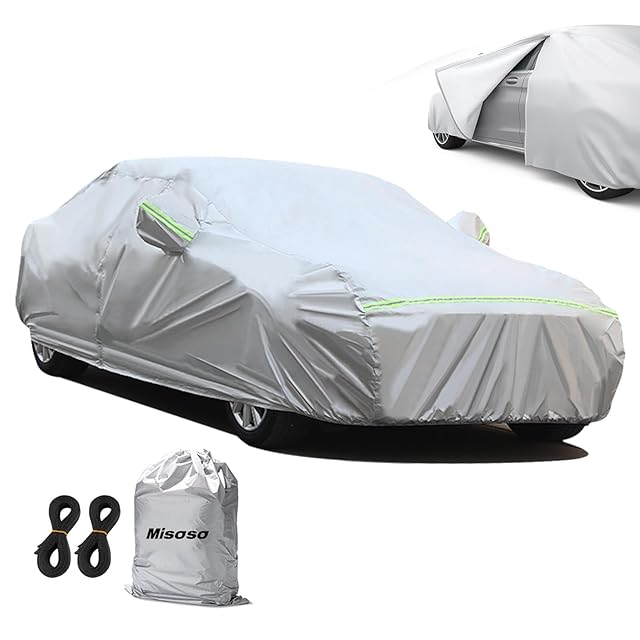 Misoso 車カバー カーカバー 自動車カバー 自動車ボディカバー 裏起毛 10層構造 防水防雪防塵防輻射紫外線 耐久性 汎用サイズ 簡単な取り付けと収納 弾力風防ロープと収納袋付き