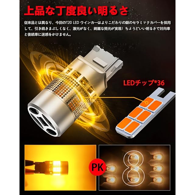 t20 led ウインカー ピンチ部違い兼用 アンバー 1200Lm ハイフラ防止 抵抗内蔵 ステルス 冷却ファン搭載