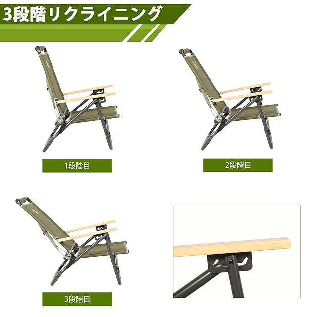 TIMBER RIDGE アウトドアチェア あぐらチェア 折り畳み 3段リクライニング 耐荷重150kg 重量3.9kg キャンプ ローチェア ソロ 椅子 木制肘掛 釣り バーベキュー