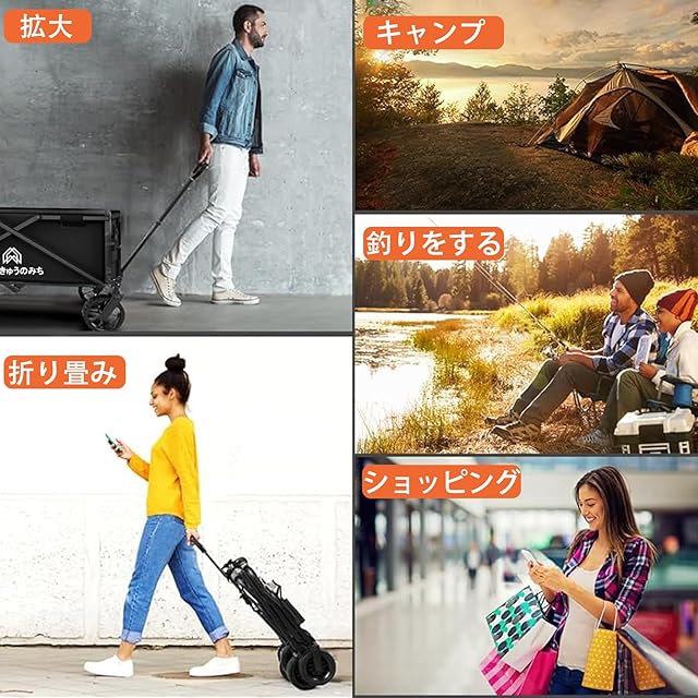 多様なシーンに対応:キャンプだけでなく、買い物カート・ベビーカーやペット用カートとしても使用可能な汎用性の高さ。シンプルかつ洗練されたデザインで幅広いシーンにマッチ。フレーム、車輪、布部分はすべて簡単に分解可能で、清掃やメンテナンスが容易。長期間清潔な状態を保ちます。