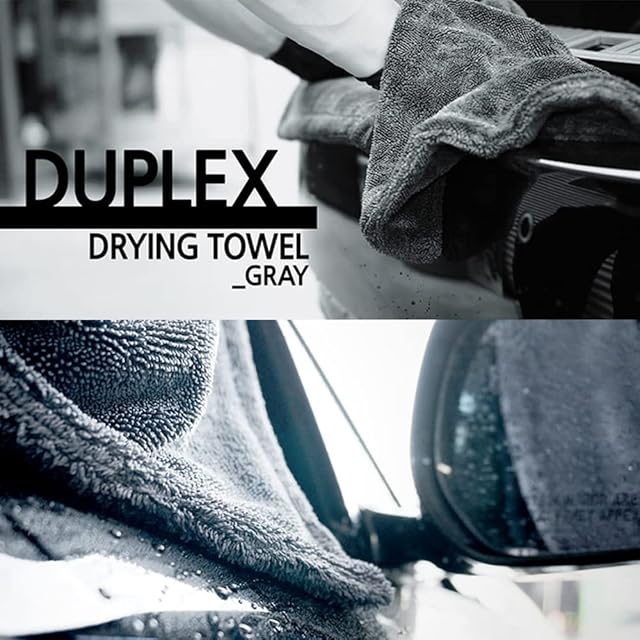 PURESTAR 洗車用超吸水タオル 一瞬で水滴がなくなり一度も絞らない吸水量 マイクロファイバー デュープレックスドライングタオル Lサイズ グレー 約90cmx70cm クロス 傷防止 プロ仕様 両面タイプ 厚手 ツイストパイル 大判 特大 ピュアスター DUPLEX DRYING TOWEL L GRAY
