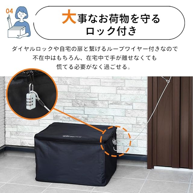 ナンバーロックや自宅の扉と繋げるループワイヤー付きなので、不在中はもちろん在宅中で手が離せなくても慌てる必要がなく過ごせます。