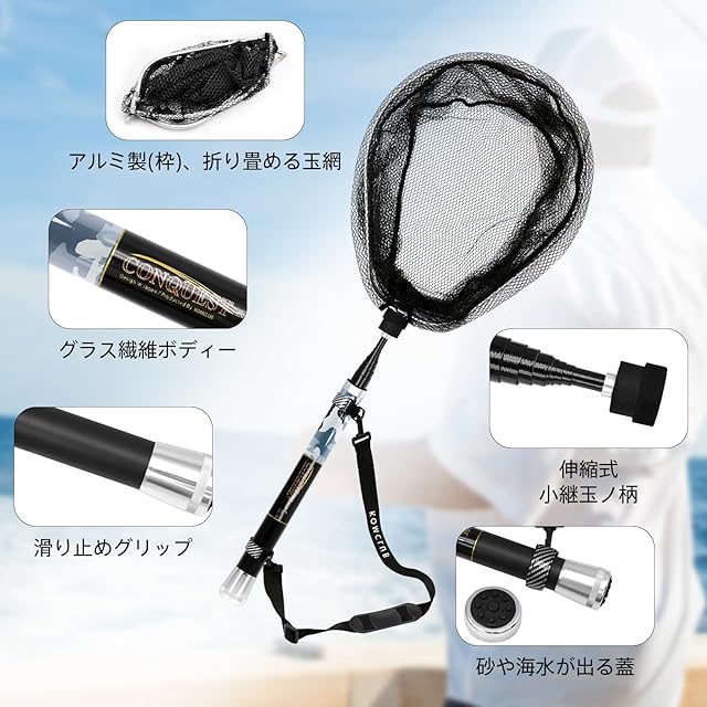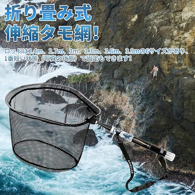 【多用途】川場の水遊びから海釣りまで、淡水・海水両用ランディングネット!堤防釣り、荒磯・波止め・沖堤など移動が多い釣りや探り釣りに最適!