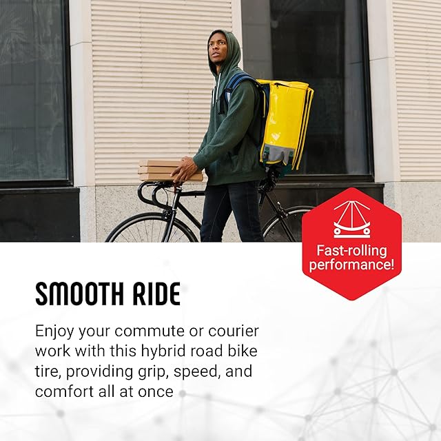 良く転がるトレッドデザインと、耐久性に優れ長期間使用可能なコンパウンドを採用し、シティライドに求められる性能を兼ね備えています。