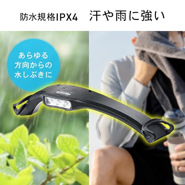 商品名:イーサプライ LED キャップライト 帽子ライト USB-C充電 明るさ3段階 250ルーメン 防水IPX4 クリップ式 軽量 アウトドア ランニング 散歩 EEX-LEDWE02