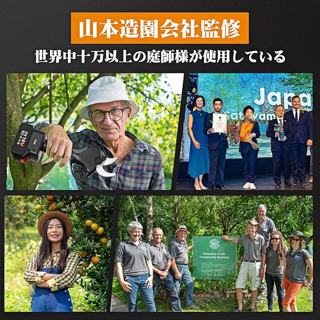 【40mm切断径&山本造園会社監修】Yirealの充電式剪定鋏はさいだい切断径40mmの枝を楽々に切れます。開き口は半開・全開の2段階に調節できる、半開なら小さな開口は作業時間と電力を節約し、全開なら太い枝を簡単に切れます。弊店の電動バサミは山本造園会社監修で植木屋さんが楽に剪定作業するために開発しました。この10年に世界中2万の造園会社に10万以上の植木屋さんが利用しています。
