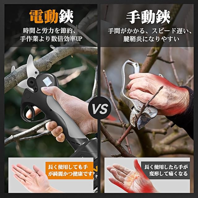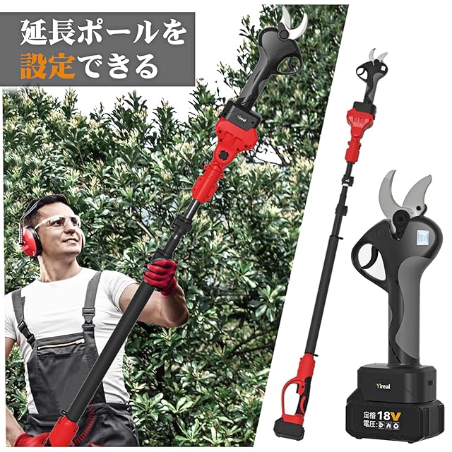 商品名:電動剪定バサミ 【山本造園会社監修】 2024年新モデル PSE取得済み切断径40mm電動ハサミ 18V4500mAh大容量バッテリー付き 2段階開き角度調節可 切断回数と残量表示 強力モーター搭載切れ味良い 日本語取扱説明書付き 人気