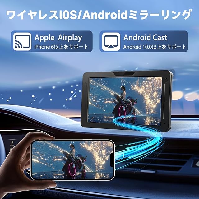 商品名:ディスプレイオーディオ 7インチ ポータブル カーオーディオ バックカメラ付き CarPlay&Android Autoに対応 カーナビ オーディオ一体型ナビ AirPlay機能付き Android Cast機能付き WiFi Bluetooth接続 車Bluetooth音声出力可 ステレオ音質 AUX FMトランスミッター ナビ 音楽 電話 ワイヤレス対応 工事不要 日本語説明書 ブラック