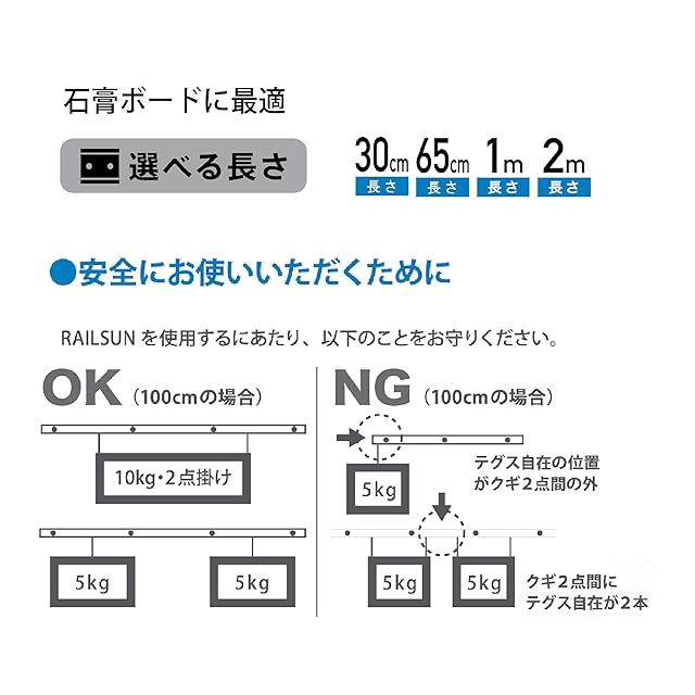 安全荷重:1点掛けの場合 5kg、2点掛けの場合 10kg