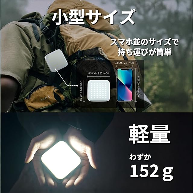 ✅【小型&コンパクト設計】 152gの軽量設計で持ち運びラクラク!コンパクトなサイズながら、自立式・吊り下げ式・三脚固定の3WAY設置に対応しており、テント内、屋外、室内どこでも快適に使用可能です。