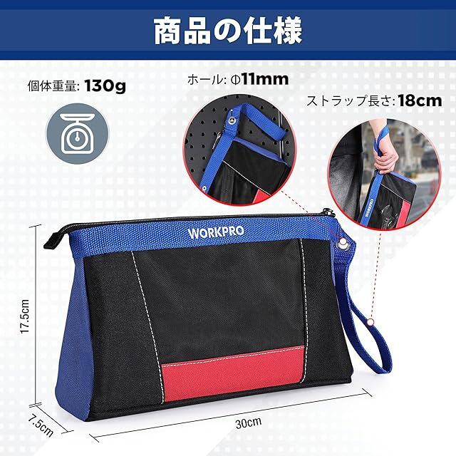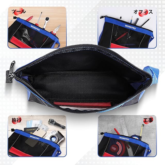 商品名:WORKPRO 工具バッグ ツールバッグ 工具袋 道具袋 工具入れ ポーチ 小型 バッグ 工具収納 オックスフォード地 小物入れ 修理 作業 電気 家庭 アウトドア用 DIY用 2個入り