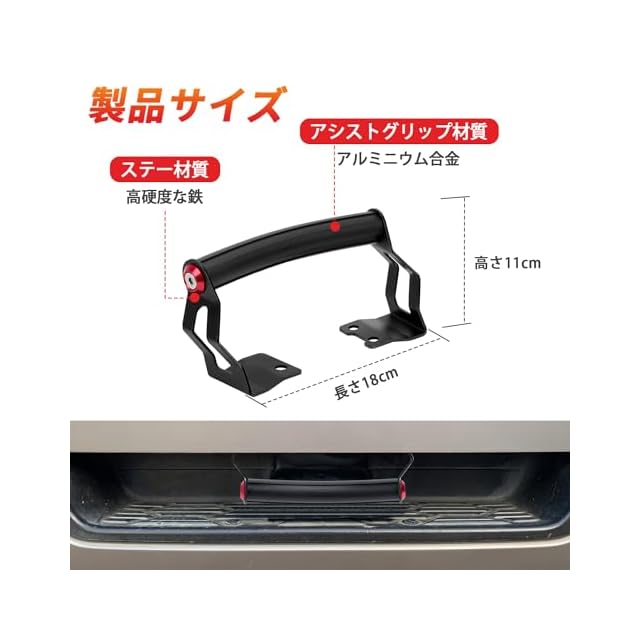 【開閉便利】車体に触れずにリアゲートを開閉すること可能でドア自体に触らないのでバックドアに手垢や細かい擦り傷等は付かません。本製品を装着後、グリップを掴んでリアゲートを軽い力で閉められ、日常は楽に開閉可能です。また、開けた際に顎があたることを避けることもできます。【安全上のご注意】閉める際は締まる手前で手を放してください、挟み込まないようにご注意してください。