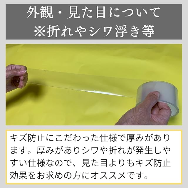 【外観】キズ防止にこだわった仕様でフィルムに厚みがあるため、シワや折れが発生しやすいです。※見た目よりもキズ防止をお求めの方にオススメです。