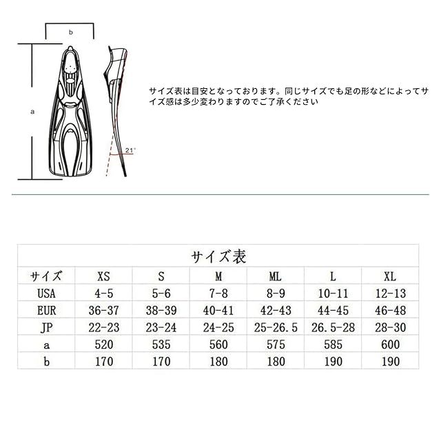 【厳選された素材】PPとTPRゴム素材で作られ、弾力性に優れ、足を動かした時にしっかりとした水流を作り出 し、初心者でも海中を泳ぎやすいように仕上げます。柔軟性と耐久性を兼ね備え、変形しにくく、長時間着 用しても快適にシュノーケルを満喫できます 拘りのデザイン】かかと部分まで覆われたフルフットタイプのため、ストラップタイプより密着度が高く、フィンと足の 一体感を実現し、快適なフィット感を与えてくれます。また、フットポケットの排水穴設計により、水の抵抗を軽 減してくれます。さらに、流線型のデザインを採用し、足の力がフィンに伝わりやすく、水中の推進力をアップさせ ます 【軽量でコンパクト・収納便利】軽量化設計とコンパクトなサイズのため、ブレードが短く、水中での小ま 【快適な着心地】素足はもちろん、ビーチを歩く際の怪我を避けるため、ソックスと併用するのも可能で す。【豊かなバリエーション・喜ばれるギフト】バリエーション豊かな3色と6サイズを展開し、幅広い年齢層の方に