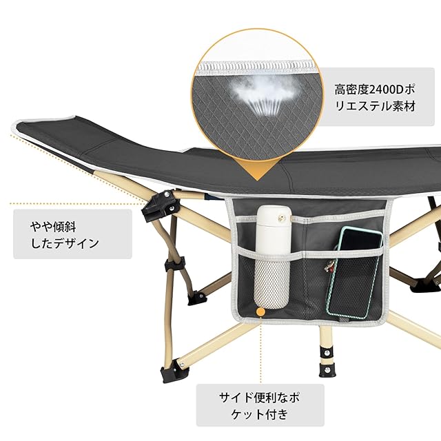 商品名:Overmont アウトドアコット 耐荷重250kg 71cmワイド 2400D高密度 折りたたみベッド キャンプ コット サマーベッド 収納袋付き 簡易ベッド 組立不要 キャンプ