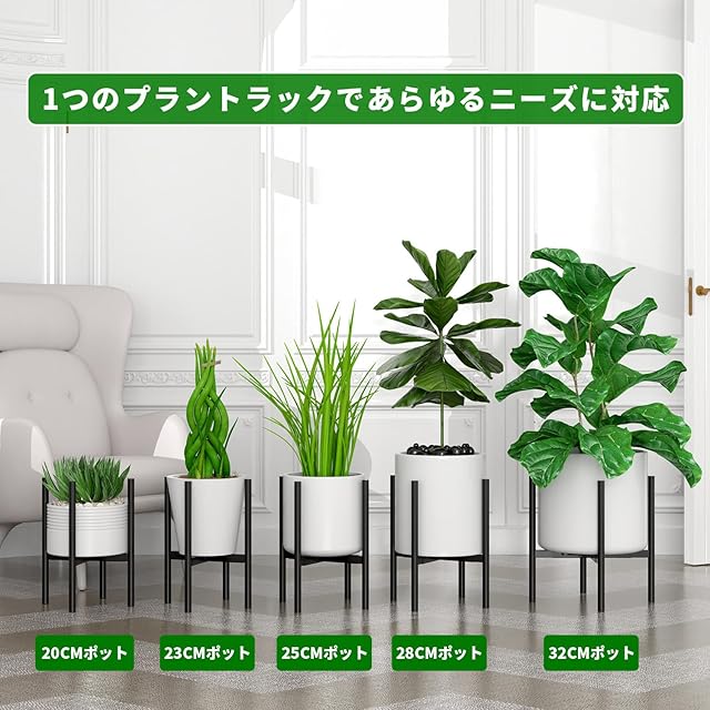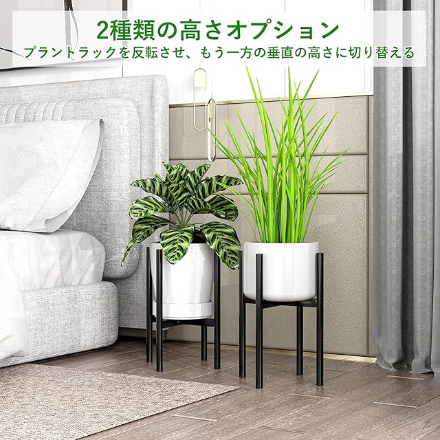 【伸縮可能な幅】外径20cm-30cmの多くのポットサイズに適合する植物ホルダーを 1 つ用意し、付属のツールでプランター幅にフィットするようにスタンドレールを引き出します。屋内用金属植物スタンドは、異なるサイズの植木鉢を置くことができ、植物が成長するにつれて 2 つの高さオプションを提供します。