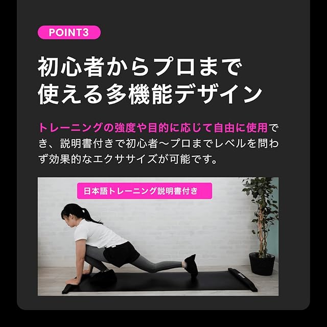 ✅【 豊富なトレーニングバリエーション 】左右にスライディングするだけでなく、様々な種類のトレーニングが可能です。本商品にはパーソナルトレーナーが監修した15種目ものトレーニング方法の記載がありますので、初心者の方でも使用方法やトレーニング方法に困ることなく安心してご使用いただけます。また、素早くスピード重視で行えば、下半身の強化や体幹の筋トレにもなりますし、ゆっくり長く行えば有酸素運動にもなります。ぜひ皆さんの目的に応じて使い分けてみてください。