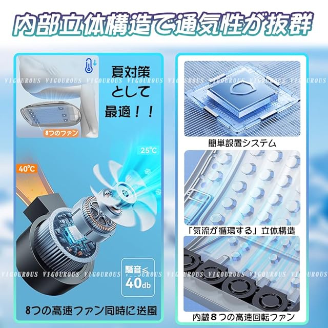 【8つの高速ファン&自動機能】シートクーラーは8つの高速ファンを内蔵しており、運転時の騒音を効果的に低減し、空気を吹き込んで放熱し、快適性を向上させます。三段階の風量を調整しできて、夏の蒸し暑さを取り除きます。 電源ONの時、人はシートに座るとボタンのライトは点滅している状態(手動モード)で5秒間以上長い押とボタンのランプが点灯している時は自動モード。その時、人は座席から離れると、自動的に停止します。もう一度座席に座ると自動送風します。