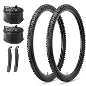 26インチマウンテンバイク用タイヤ交換キット含むタイヤ2本、米式インナーチューブ2本、タイヤレバー2本付き。前輪と後輪の両方に使用できます