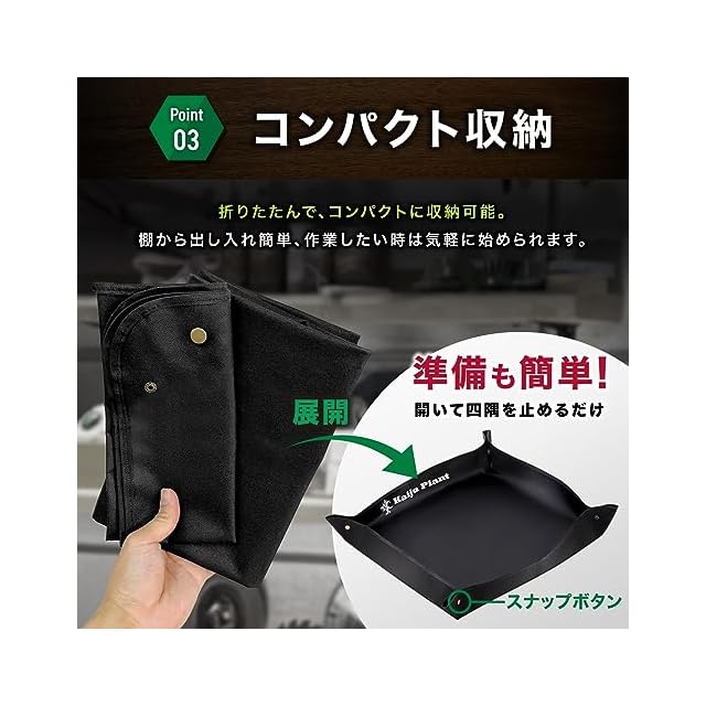 ✅【トレイ形状で飛び散り防止】4隅のボタンを留めてトレイ形状に。厚手の生地でしっかり形状を保ち、植え替え時の用土の飛び散りを防ぎます。 使わないときは折りたたんでコンパクトに。DIY作業マットとしてもオススメ。